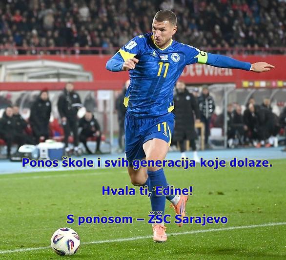 S posebnim ponosom ističemo da je naš bivši učenik, Edin Džeko, svojim radom, talentom i predanošću postao istinski ambasador sporta i naše domovine širom svijeta.
